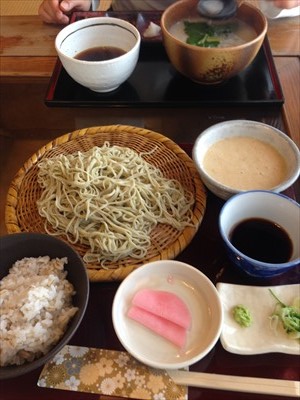 昼は蕎舎(そばや)という蕎麦屋に入った。1100の開店と同時に入店したが20分くらいでもう待ちができていた。もりそばを頼んだが、細麺の柔らか目、量が少ないという情報を得ていたので、麦とろろを一緒に注文した。普通の成人男子ではこれでも足りないかもしれない。早めの昼食だったのでちょうど良い分量だった。