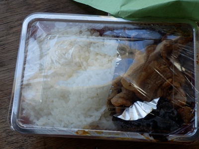 途中ワガママを聞いてもらって、以前から目をつけていた「あらいやオートコーナー」に立寄って焼肉弁当を食しました。kincyanさんもお付き合いくださって、から揚げ弁当を。小汚ない妙ちくりんな自販機に100円玉3個を投入してボタンを押したら、下の取り出し口からニュッと出てきました。みてくれ(建物や自販の機械やそこにいた猫など)に似合わず美味しかったですよ、ごはんもホクホクで。
