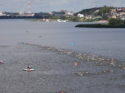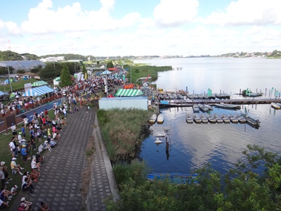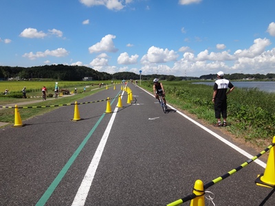 お盆休みの最終日、手賀沼トライアスロンを観戦してきました。