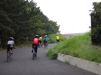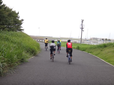 集合場所は手賀大橋の橋の下。かずおさんから「空気を入れているから少し遅れる」との連絡。到着して聞いてみたら、パンクではないけれどエアーが減っていたようでした。試しにタイヤを押してみると、まだ甘い。寄ってたかってみんなで空気を足してから出発しました。