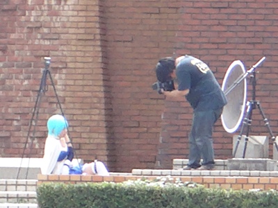 公園では何やらモデルとカメラマンと一対一で撮影をしています。近くに寄ってみるとコスプレでした。良く良く見渡せば、所々で同じようなことをやっています。幕張メッセで開催されている「東京ゲームショウ」の流れじゃないかと推測。