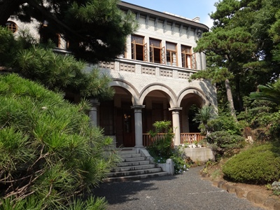 次に向かったのは「旧神谷伝兵衛稲毛別荘」。外見は瀟洒な洋館、中に入ると一階はマントルピースのある広間。二階は和室、(行ったことないけど)高級うなぎ屋の離れ、と言ったカンジです。
