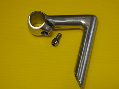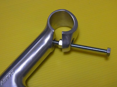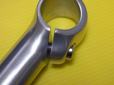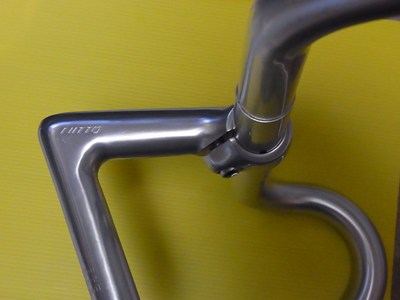 以前のハンドルは黒アルマイト処理がしてあり、それが気に入らなくて今回のアルミ色にしました。スレッドステムだとクランプ径が25.4か26.0、なかなか欲しい形状のハンドルがありません。