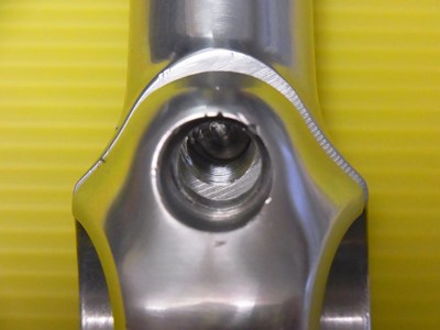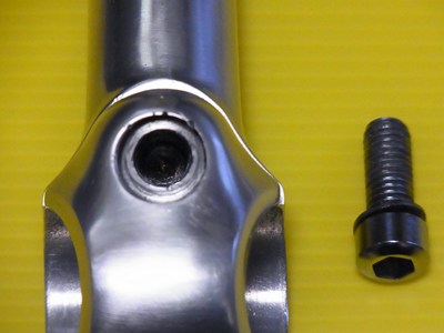 原因は、コンパクトタイプのハンドルを装着する際にはクランプをかなり開かなければハンドルが通りません。クランプねじを締める時も開いたままなので、締め始めにのねじの掛かりが浅い状態で大きな力が掛かったものと思います。
