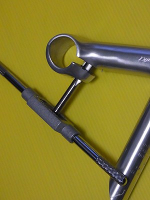 今度のハンドルを通すには、これくらい広げなければなりませんでしたが、前に付けていたハンドルはもっとコンパクトだったのでさらに広げて通しました。クランプもちょっと塑性変形して可哀そうでした。