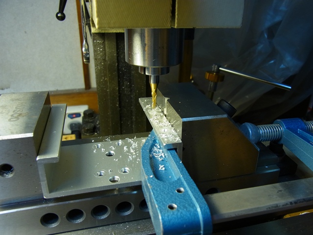 次にアルミのCチャンネルを加工します。エンドミルを当てると加工物が暴れるので、Fクランプを併用しました。