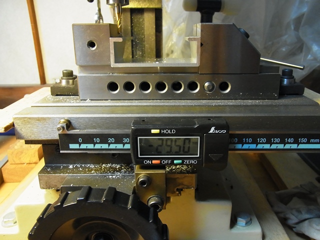 フライステーブルの横送りには、ノギスを改造したDRO(デジタルリードアウト)を付けています。3軸全部に付けたいのですが、なかなかいい取付け場所が無くて停滞したまんまです。