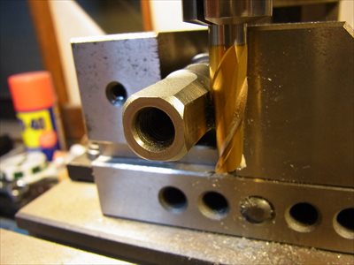 そして削り始めました。思ったより削りやすい材料でした。最初φ6.5、シャンクφ10の長めのエンドミルを使っていましたが、何となくたわみが多いいような気がしてφ8のストレート(短め)に変えました。