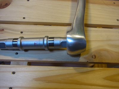BBシャフトにはベアリングの当たり面以外はめっきが掛かっています。くすんだ銀色、亜鉛めっきかなあ。ちょっと分かりません。今回削った部分はもちろん鉄の素地が出てしまいました。一応めっき掛けておこうかな。