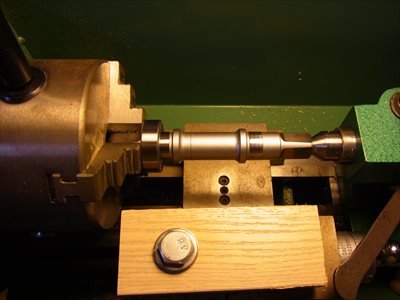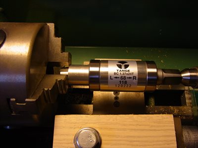 BB軸にベアリングを圧入してもとの状態に組み上げます。たいして力のいらない圧入なので旋盤のテールストックで押し込みました。
