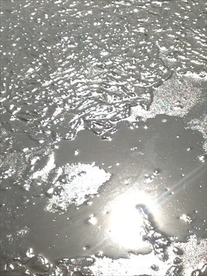 サギがおじさんの50cm斜め後方で待機していて、おじさんが竿を上げるたびにすぐ脇まで覗きに来ます。何も引っかかっていないとまた後方に下がって待機。これを何度となく繰り返していました。残念ながら見ている間には獲物にありつけなかったようです。