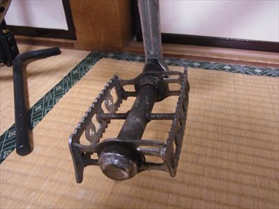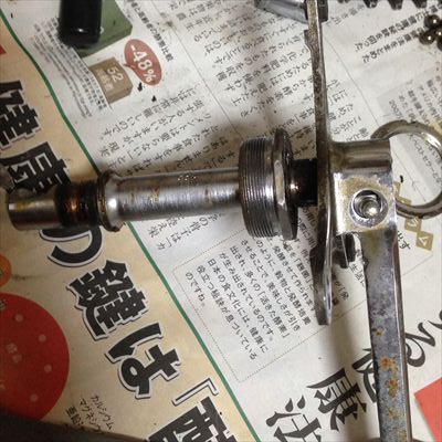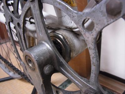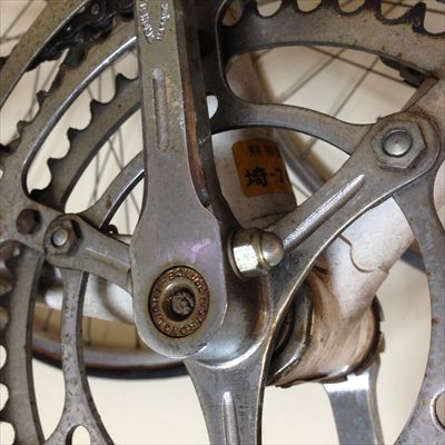 ・BBとクランク:右クランクのコッターピンが抜けない。クランクアームは鉄製、スパイダーは3本(チェンリング固定ねじは6本)、ペダルねじはフレンチ規格