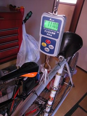 車重はリアタイヤ欠落状態で11.1kgでした。