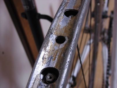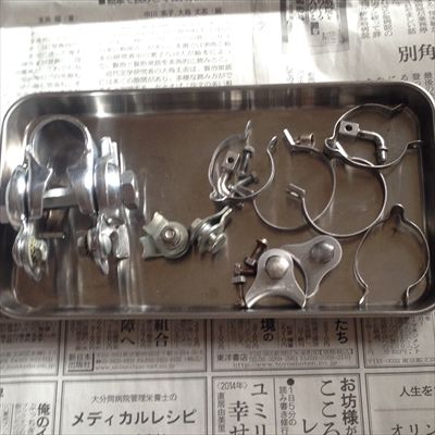 ・バンド類:トップチューブのアウター止め、ダウンチューブの左Wレバー台座、インフレーター受けに使っている。鉄+クロームめっきで、めっきの剥がれや錆がある
