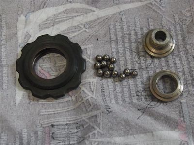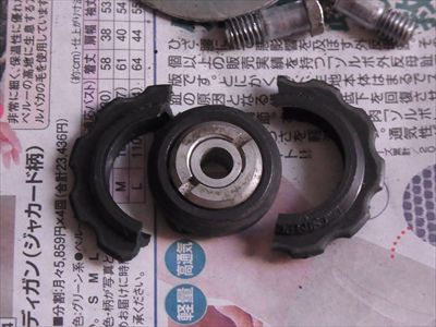 ・RDの分解整備、プーリーのグリスアップ。このプーリーは硬球が入っていて玉当たりの調整が可能。テンションプーリーは樹脂のギヤ部分が割れていたのでエポキシ接着剤で補修、しかし不安なので後に交換。