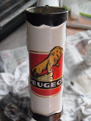 フレーム素材はクロモリ(クロム・モリブデン鋼)ではありません。プジョーオリジナルで、マンガン・モリブデン鋼のようなもの?