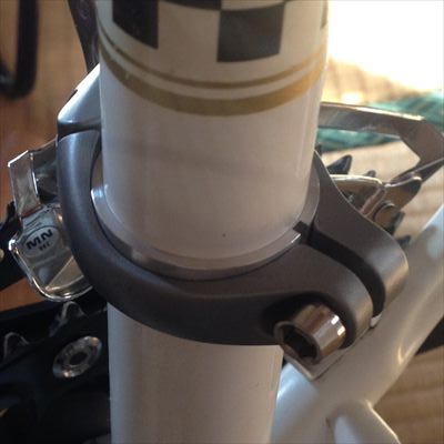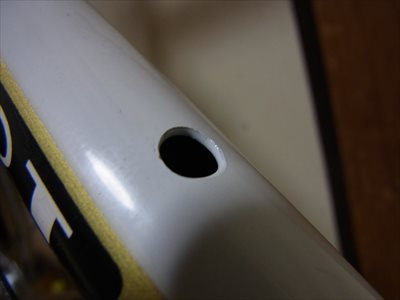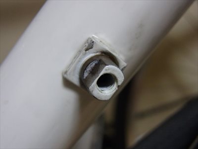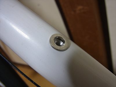 ボトルケージ台座を付けました。強度の面からフレームには穴を開けたくなかったのですが、一方的に信頼している自転車工房の方(構造力学に詳しい)が、同じようなことをやっているのを知って踏ん切りがつきました。考えてみれば、引っ張り(または曲げの外側)でなければさほど問題ではないですね。