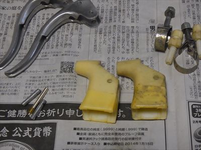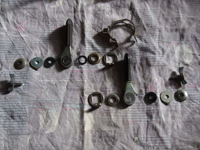 ・Wレバーの分解整備、右レバーの樹脂ワッシャー(滑ってフリクションを得るもの)が欠落。左のワッシャーを右に移植して、左は0.3mm厚の銅板(りん青銅)で製作。