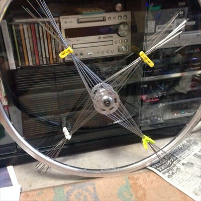 ・スポークが入ってきたので前後ホイール組み、ボスフリー装着。