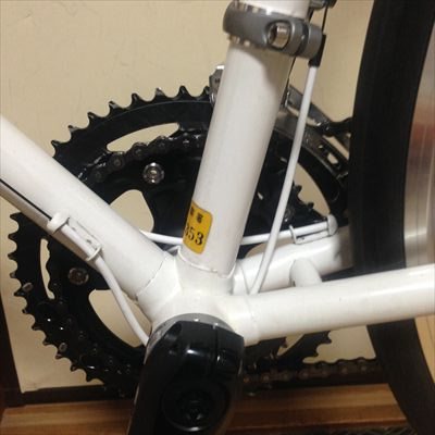 ・クランクはシマノ105ノーマルに交換(Bさんのタイレルに装着していたもの)。52×39
