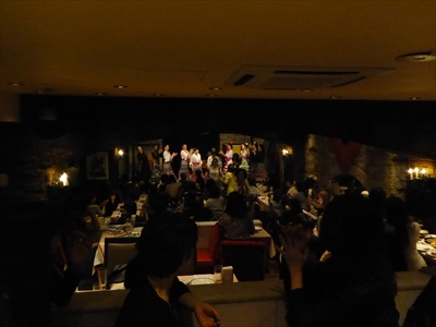 場所は西日暮里のスペイン料理店「アルハムブラ」。奥にステージがあり食事をする席がひな壇の作りになっており遠くからでもステージが見渡せる。
